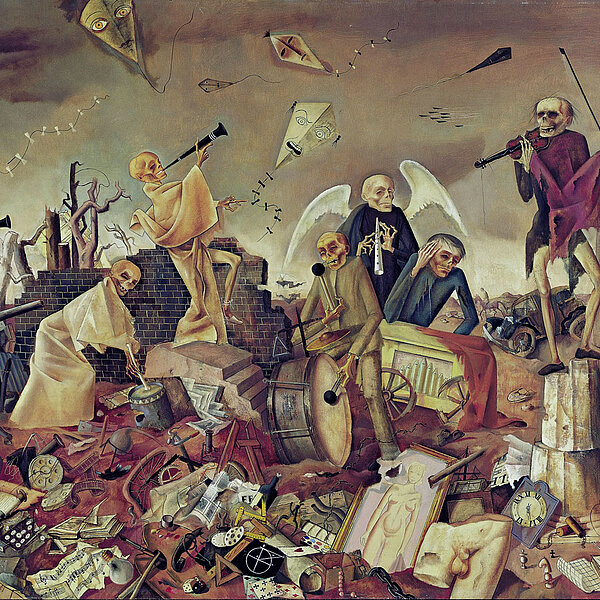 Im Zentrum der Ausstellung standen Felix Nussbaums letztes Gemälde »Triumph des Todes«, 1944, und Ernst Ludwig Kirchners »Totentanz der Mary Wigman«, 1926–28. Zusammen mit Arbeiten von Otto Dix, Ernst Barlach, Karl Hofer, Walt Disney u.a. zeigte die Schau ein breites Spektrum unterschiedlicher Arbeiten zum Thema Todentanz im Kontext der beiden Weltkriege. Dabei wurden Bezüge nicht nur in Malerei und Grafik, sondern auch zu künstlerischen Bearbeitungen des Themas im modernen Tanz und in der Populärkultur der Zeit beleuchtet.