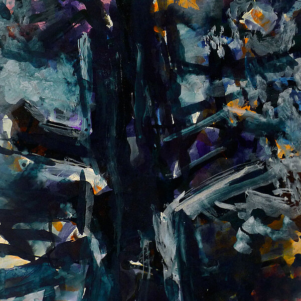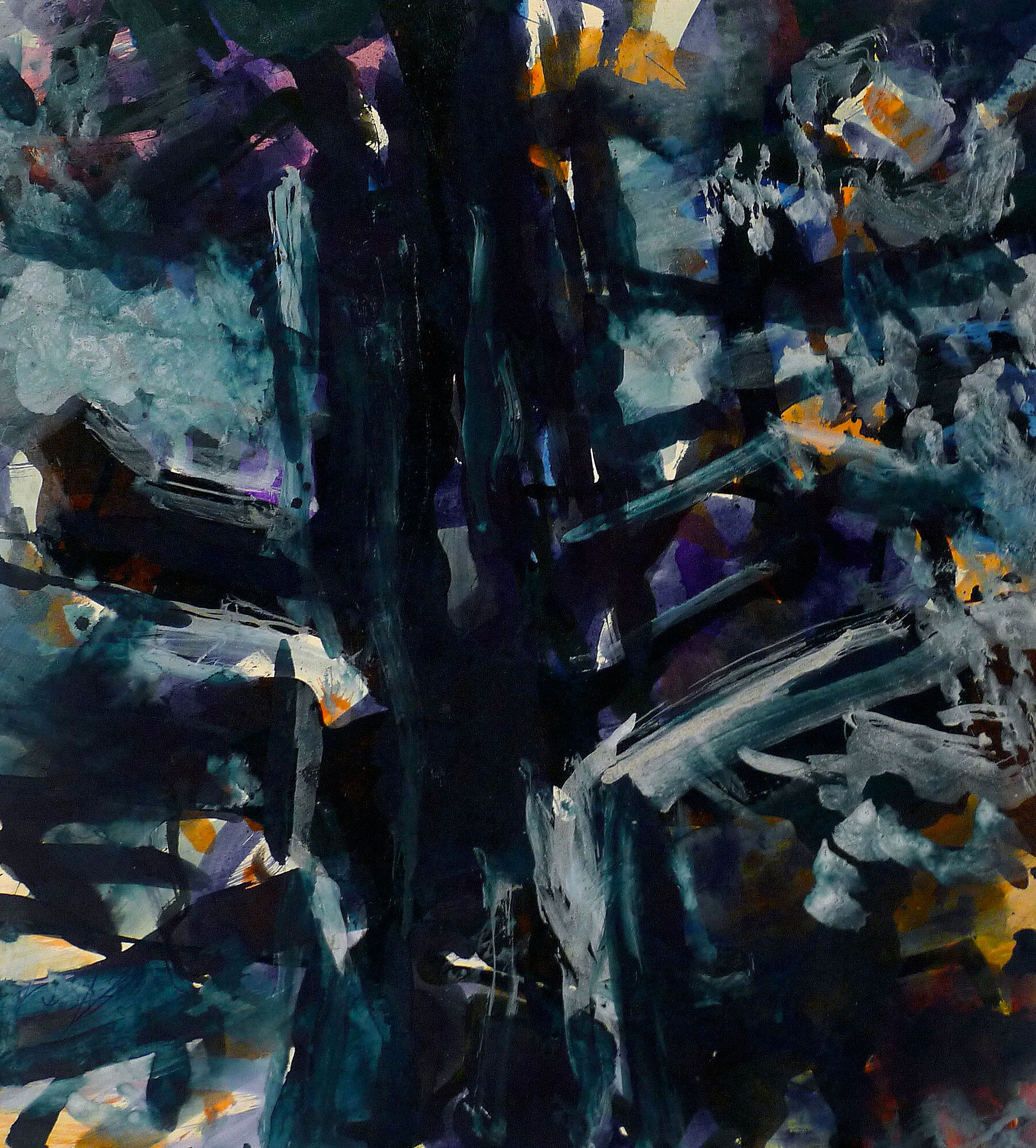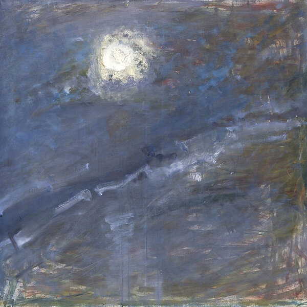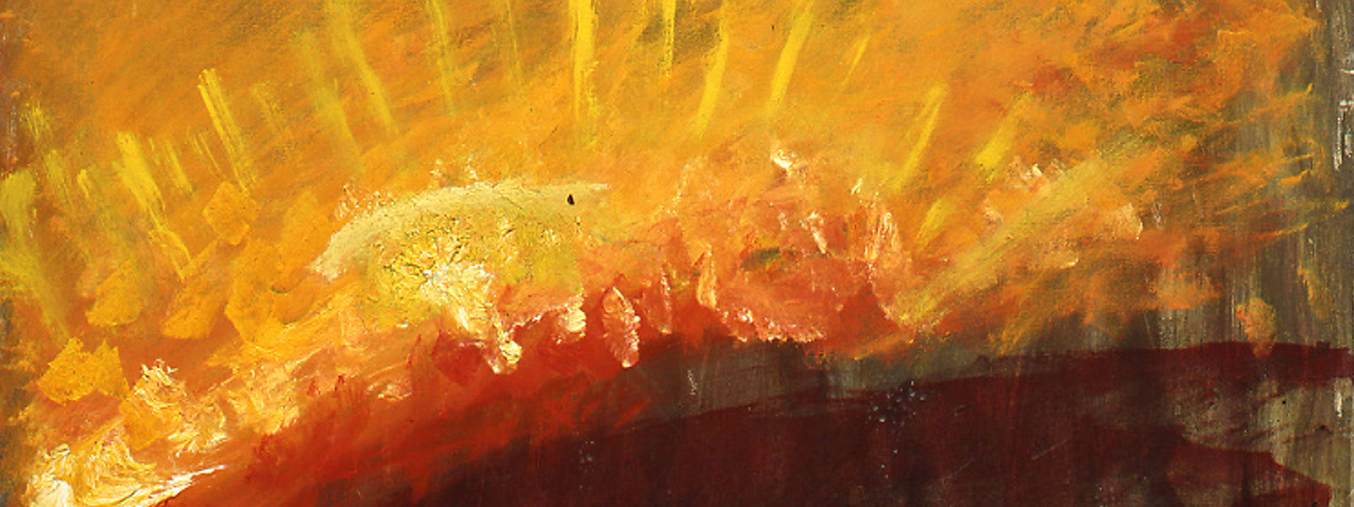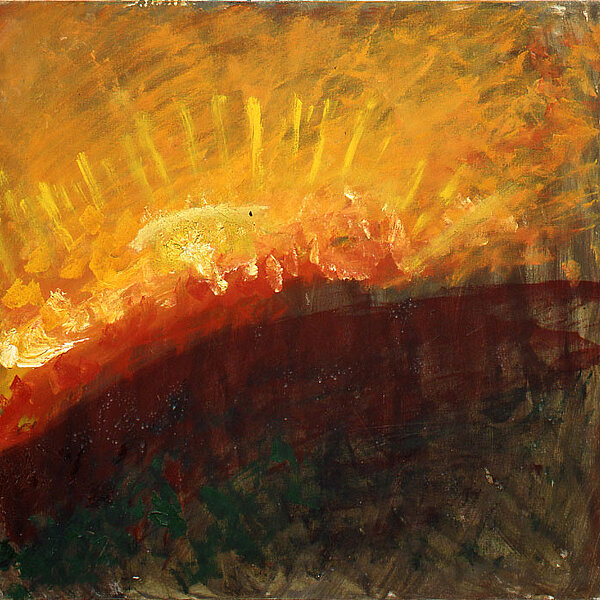 Fritz Ascher, Hügelige Landschaft im Sonnenuntergang, 1950er Jahre, Gouache auf Papier, 85 x 90 cm, Privatsammlung, Ausschnitt, © Fritz Ascher Society