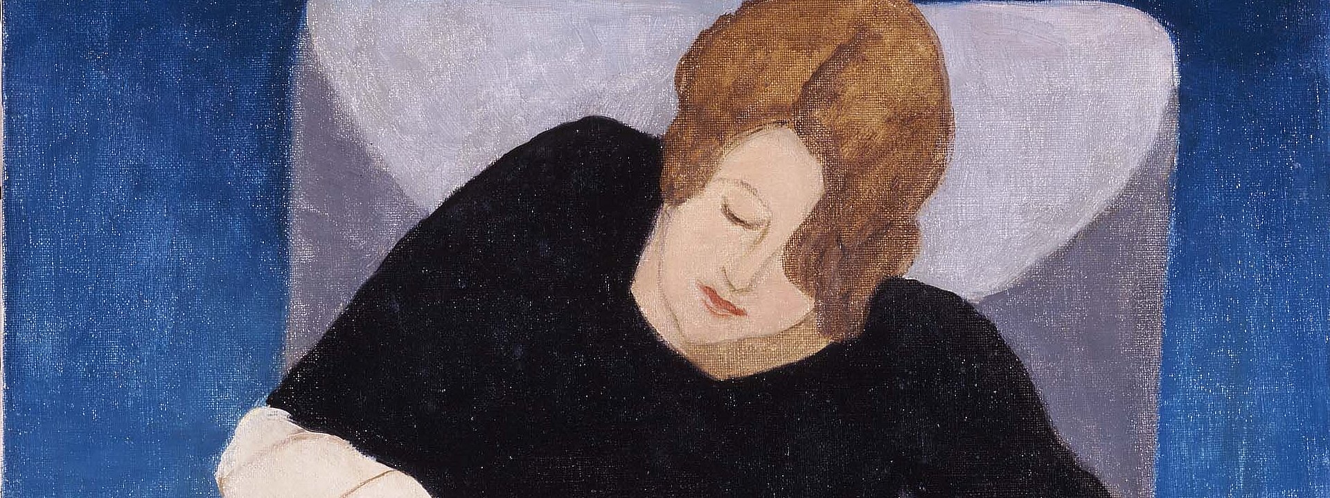 Kopfbild: Gabriele Münter, Dame im Sessel schreibend (Stenographie. Schweizerin in Pyjama), 1929,