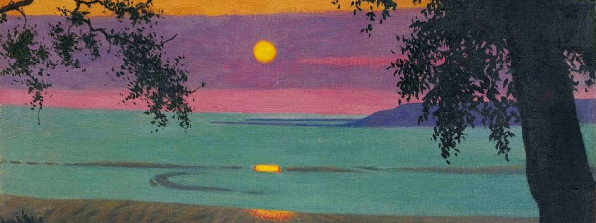 Aélix Vallotton, Coucher de soleil á Grace, ciel orangé et violet, 1918, Öl auf Leinwand, Privatsammlung