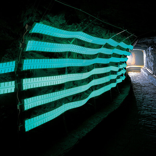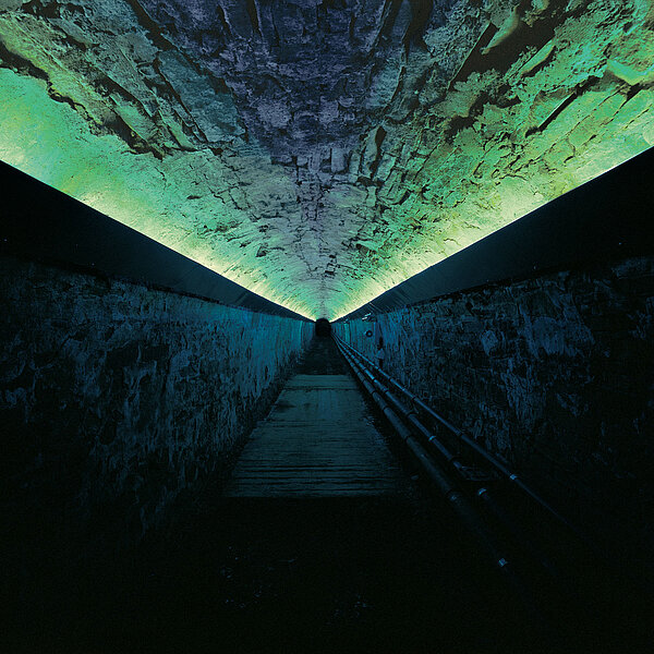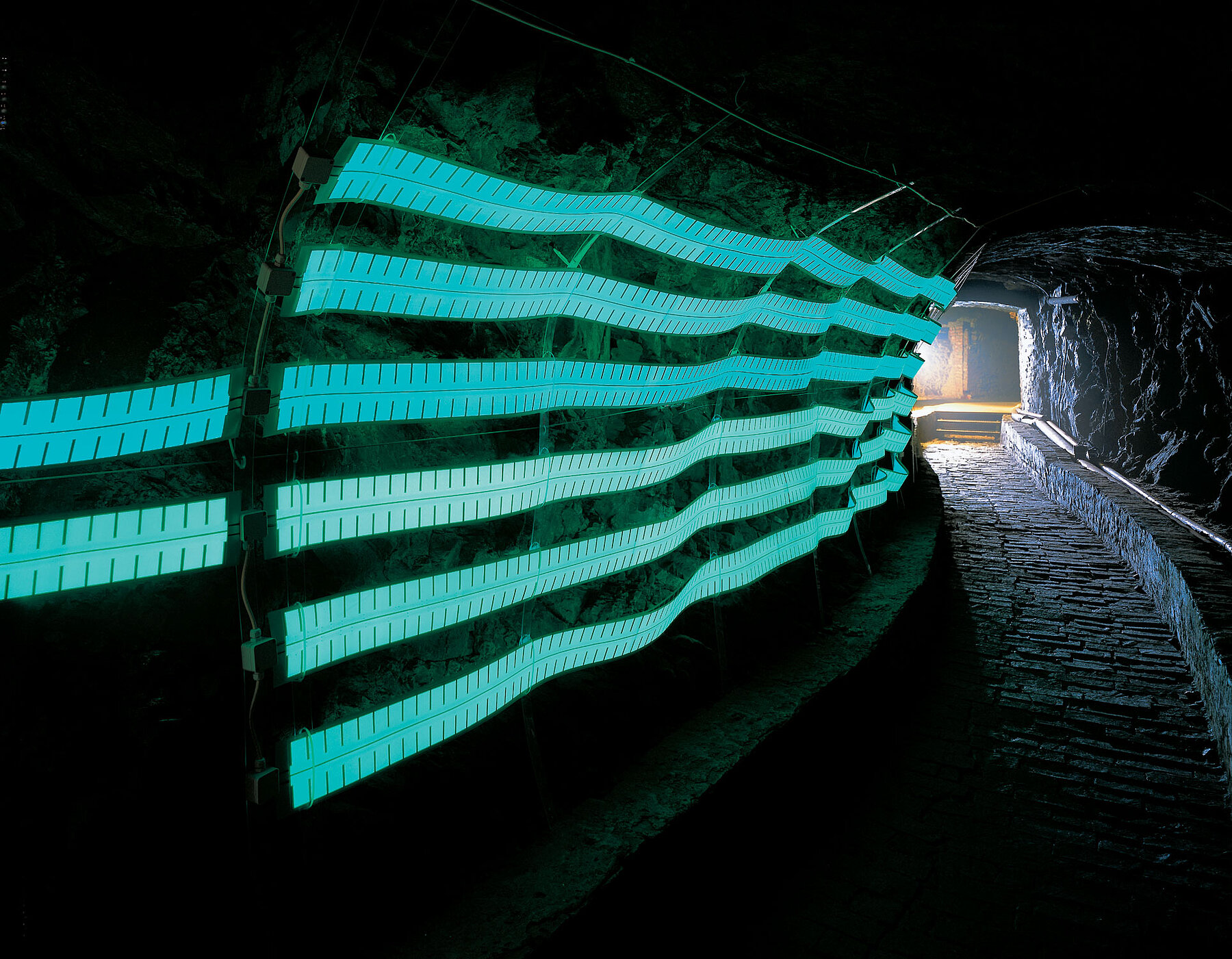 Daniel Hausig geht mit seinen selbstgefertigten Lichtbändern dem nicht nur historischen Tatbestand des Stromdiebstahls nach. Mit seinem »Energiesparprogramm« entlarvt er wiederum den magischen Effekt als Resultat technischer Kalkulation. Mit Schwarzlicht und Klängen legt Christina Kubisch Spuren der Vergangenheit im Stollen frei. Sie verwandelt die Gänge des Stollens in eine unwirkliche Welt, eingetaucht in phosphorisierendem Licht. Geräusche werden zu Licht: in Achim Wollscheids Installation im Fahrstuhlschacht bestimmen die von den wartenden Besuchern verursachten Stimmen und Geräusche eine sich ständig verändernde Licht- und Klangkulisse. Und Eno Henze, der jüngste der Künstler, lässt den Besucher mit seiner Videoinstallation an einer Fahrt mit der U5, einer U-Bahnlinie in Berlin, teilnehmen.