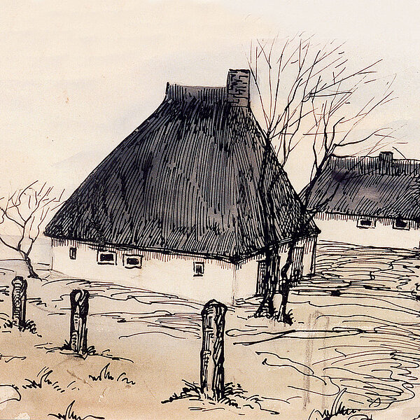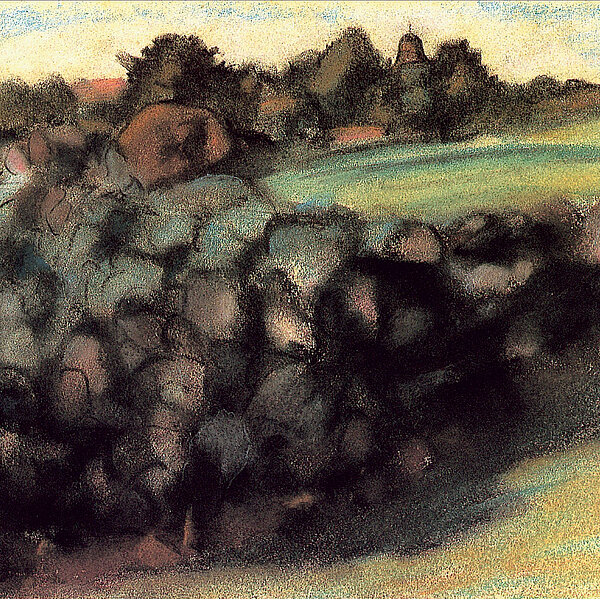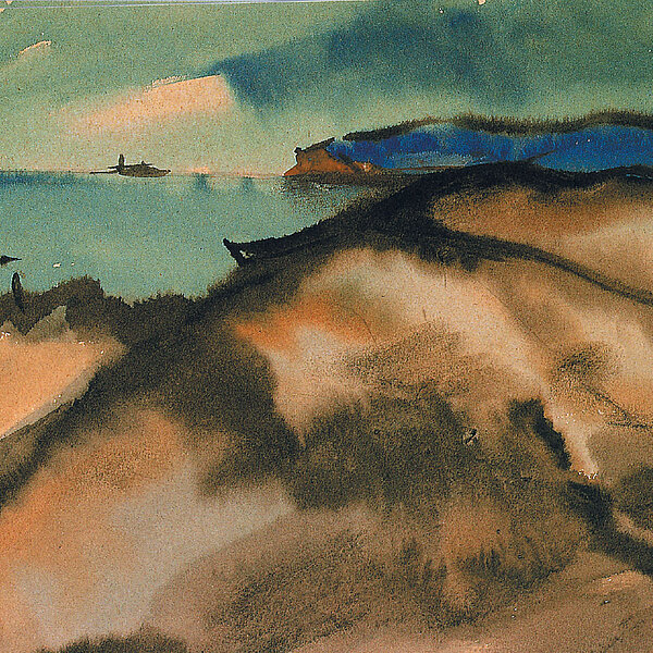 Kopfbild: Käthe Loewenthal, Blick von Vitte auf Hucke und Dornbusch (Ausschnitt), Aquarell, 23,1 x 28,3 cm, Privatbesitz