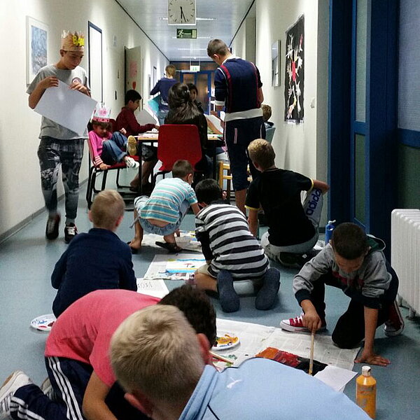 Der Kunstworkshop des Museums- und Kunstvereins für geflüchtete Kinder und Jugendliche im Erich-Maria-Remarque-Haus der Landesaufnahmebehörde Osnabrück besteht seit April 2015. Mit dem Angebot möchten wir den durch Krieg und Flucht traumatisierten Kindern Freude vermitteln und ihnen einen Moment individuellen Erlebens ermöglichen. In entspannter und kreativer Atmosphäre können sie neue Kraft schöpfen.